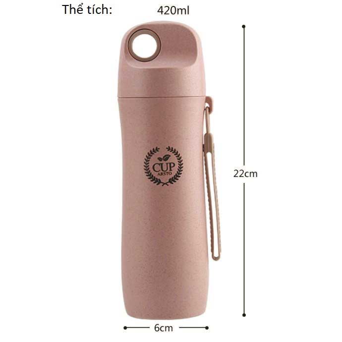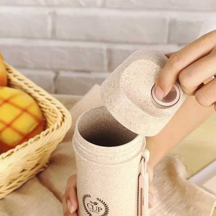 Bình được làm từ sợi lúa mạch kết hợp nhựa PP cao cấp, không chứa BPA, an toàn khi dùng cho nước nóng – lạnh.