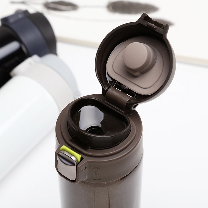 Nắp bật tích hợp nút khóa giúp hạn chế việc mở nắp ngoài ý muốn, đảm bảo an toàn khi bỏ trong balo hoặc túi xách. Chỉ cần nhấn nhẹ để mở, thao tác nhanh và dễ sử dụng.