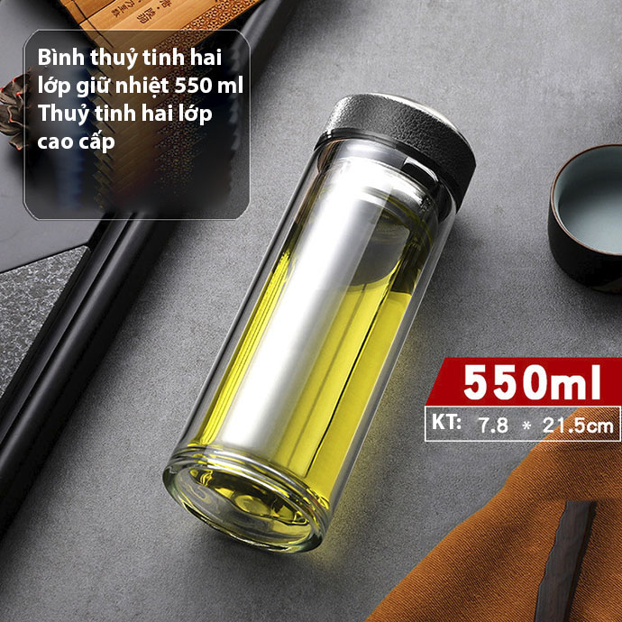 Bình thủy tinh 2 lớp có lọc trà đa chức năng