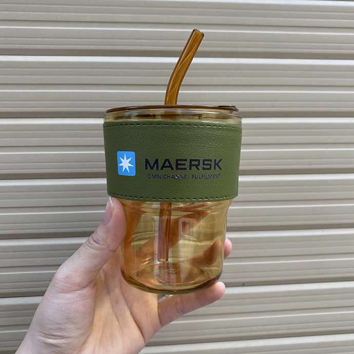 - Cốc thủy tinh có nắp, ống hút và bao da đi kèm.