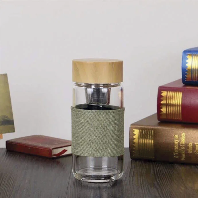 Sản phẩm sở hữu lớp vỏ thủy tinh dày, nắp gỗ tinh tế và tay cầm vải chống nóng, mang lại trải nghiệm sử dụng bền bỉ – tiện ích.
