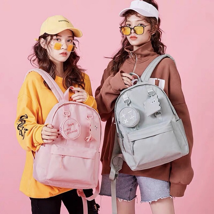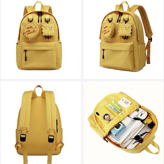Balo thời trang kèm túi charm thú siêu dễ thương với 5 màu: vàng, đen, hồng, tím và xám. Thiết kế rộng rãi, nhiều ngăn, phù hợp học sinh – sinh viên dùng đi học, đi chơi, đi làm.