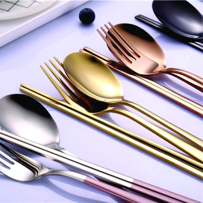 Bộ muỗng nĩa đũa inox 304 cao cấp phiên bản nhiều màu sang trọng – gồm bạc, đen, vàng và hồng. Chất liệu bền đẹp, chống gỉ tuyệt đối, phù hợp dùng tại gia đình, nhà hàng hoặc mang theo đi làm.
