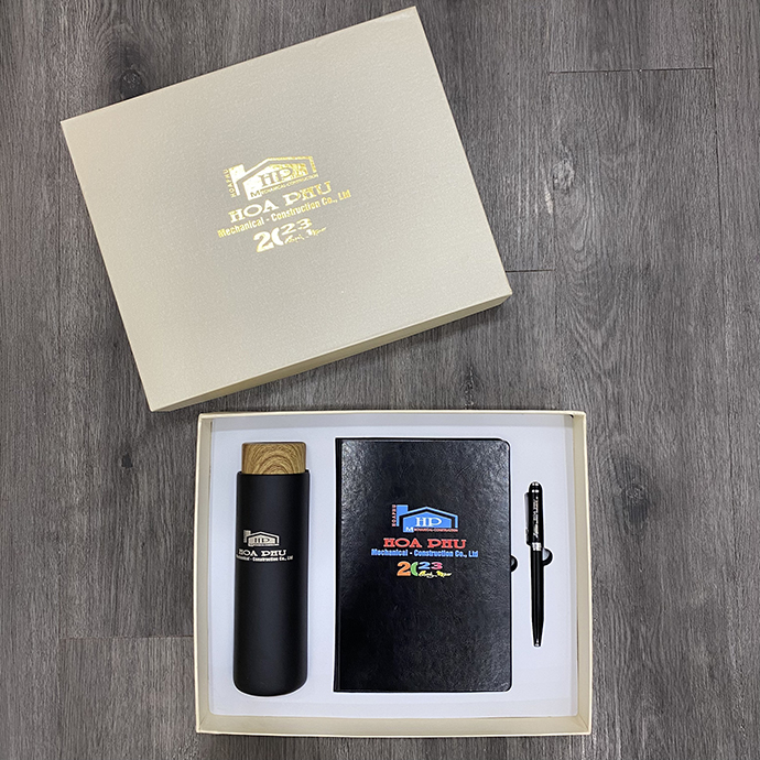 Vì sao nên chọn bộ gift 3 món Bình Giữ Nhiệt - Sổ Tay - Bút Bi in logo Hoà Phú?