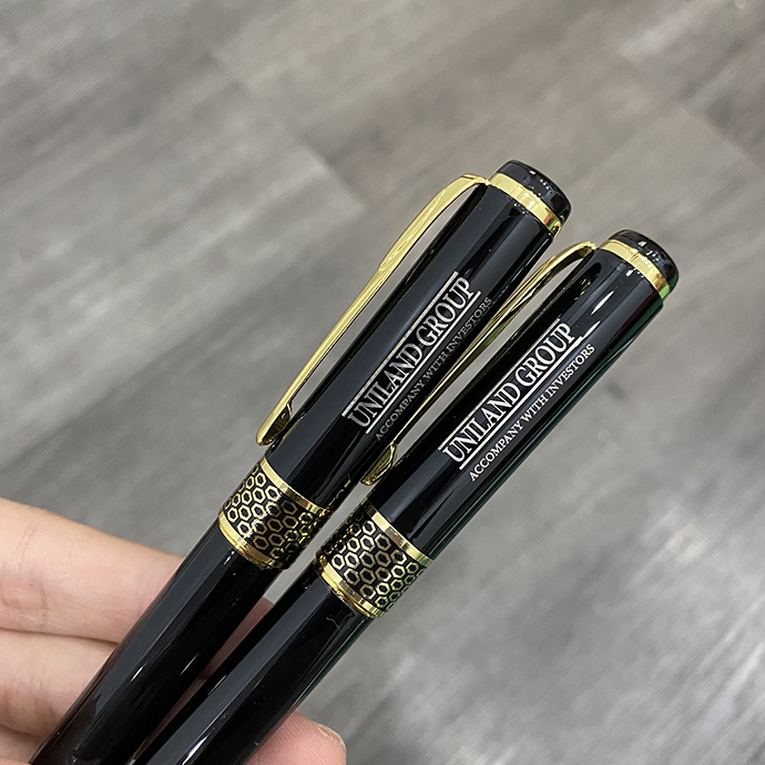 - Bút kim loại cao cấp: Với thiết kế sang trọng, bút kim loại mang đến sự dễ dàng và thoải mái khi viết, đồng thời in logo sắc nét giúp quảng bá thương hiệu hiệu quả.