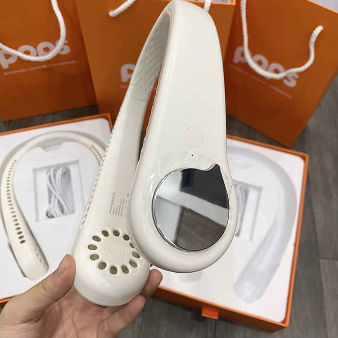 - Quạt đeo cổ với 3 tốc độ, dung lượng 4000mah mini có báo pin cổng sạc usb tiện lợi.