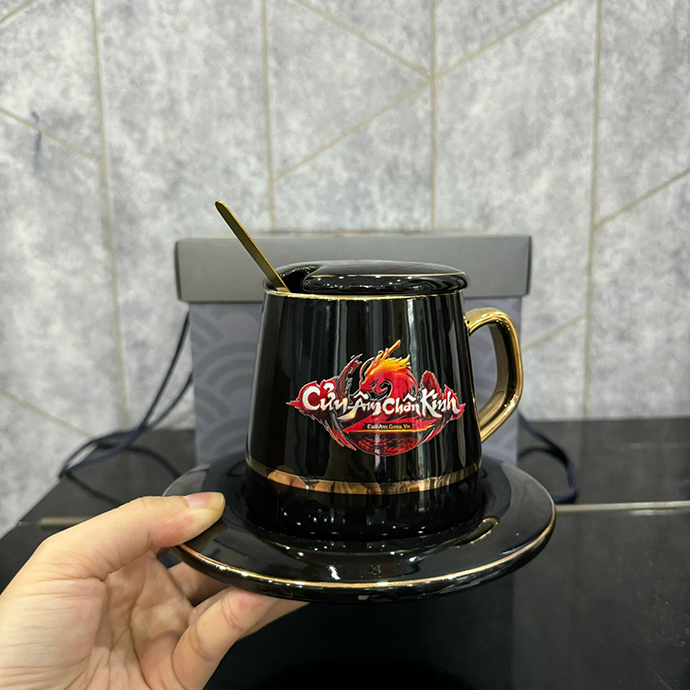 BỘ LY SỨ KÈM ĐĨA MUỖNG IN LOGO THEO YÊU CẦU - QUÀ TẶNG DOANH NGHIỆP CAO CẤP