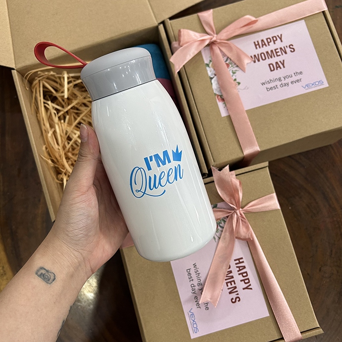 Set quà tặng dành cho ngày phụ 8/3 hoặc 20/10 gồm 3 món: bình giữ nhiệt, khăn quảng cổ, ví ý nghĩa tặng cho đồng nghiệp nữ, người yêu, mẹ, vợ. Hãy dành sự yêu thương và trân trọng đến một nửa thế giới với bộ quà tặng ấn tượng phiên bản giới hạn. Hộp quà tặng full box gồm: