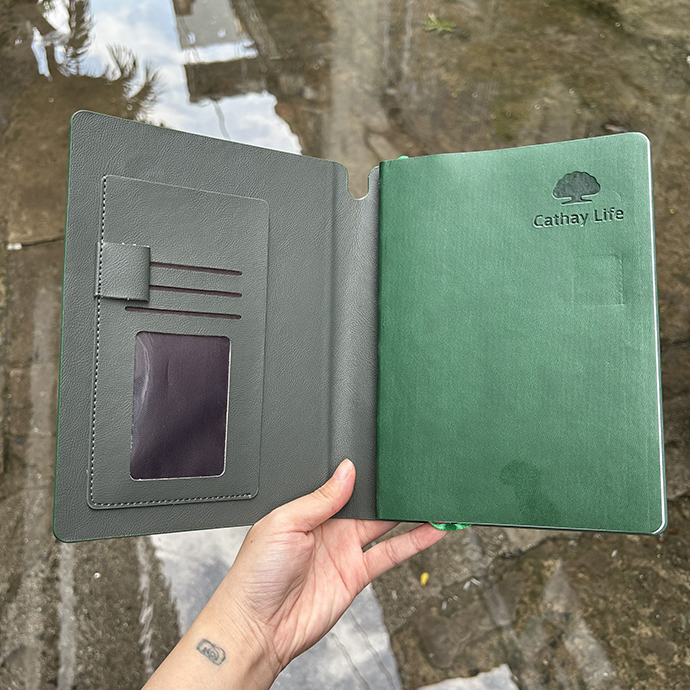 + Sổ bìa da cao cấp khổ A5 in logo theo yêu cầu.