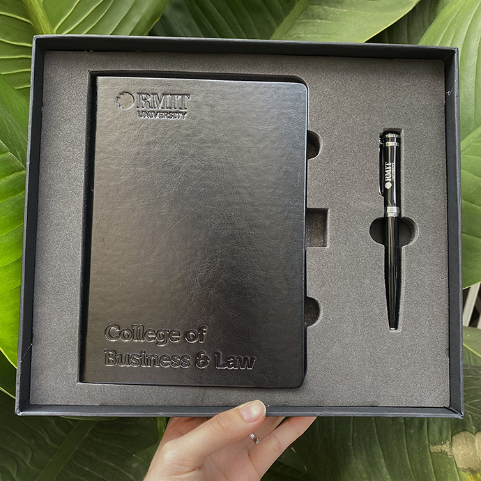 #BoQuaTangSoTay #QuaTangSoTayRMIT #SoTayBiaDa #SoTayInLogo #ButKimLoaiCaoCap #QuaTangDoanhNghiep #QuaTangSinhVien #QuaTangSuKien #GiftSetCaoCap