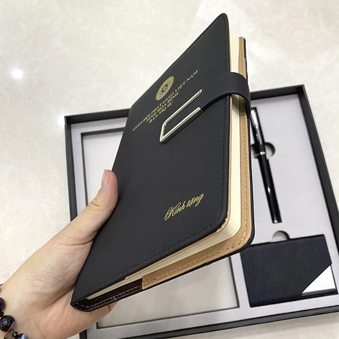 Bộ quà tặng sổ tay bìa da in logo là giải pháp quà tặng