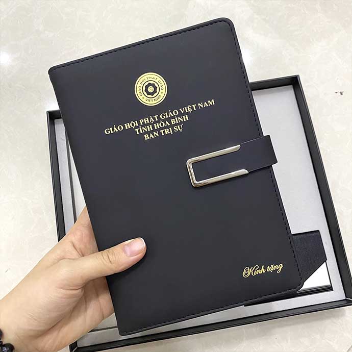 logo được dập chìm hoặc ép kim sắc nét, thể hiện tính trang trọng và chuyên nghiệp.