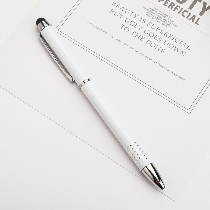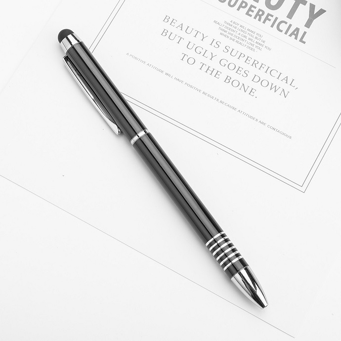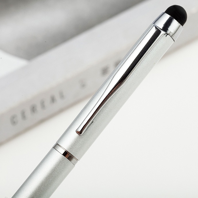 Bút bi kim loại 2 trong 1 với thân bút nhiều màu sắc, cài bạc , có 1 đầu là bút bi đầu còn lại là đầu cảm ứng, thiết kế năng động, bắt mắt thích hợp làm quà tặng quảng cáo, hội nghị, sự kiện.