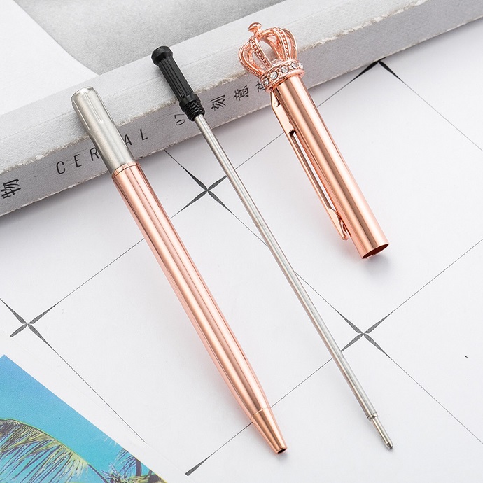 Bút bi kim loại vương miện được thiết kế ấn tượng với nhiều màu, trên đâu có tạo hình vương miện độc lạ,thích hợp làm quà tặng quảng cáo, sự kiện, hội nghị...