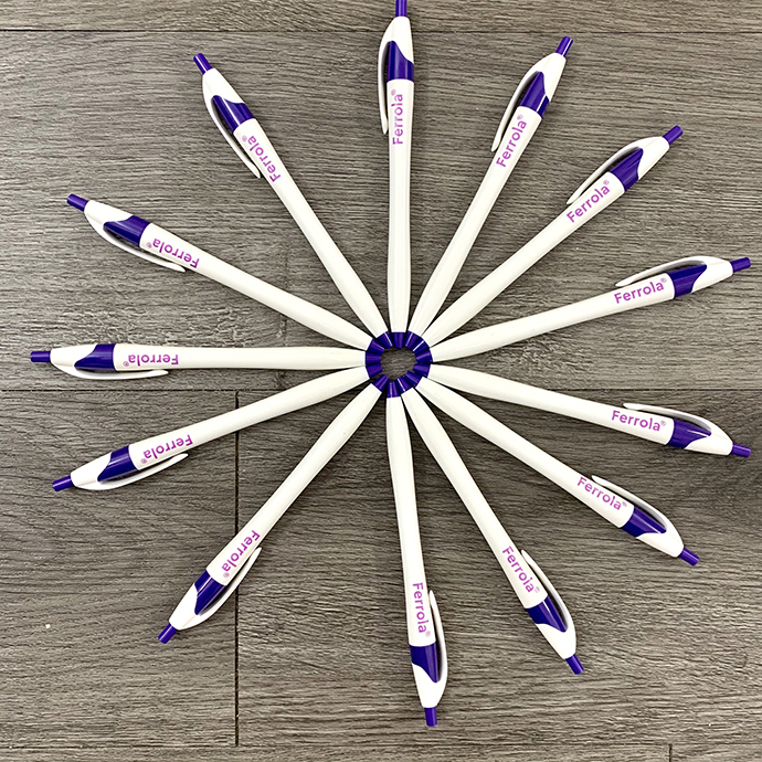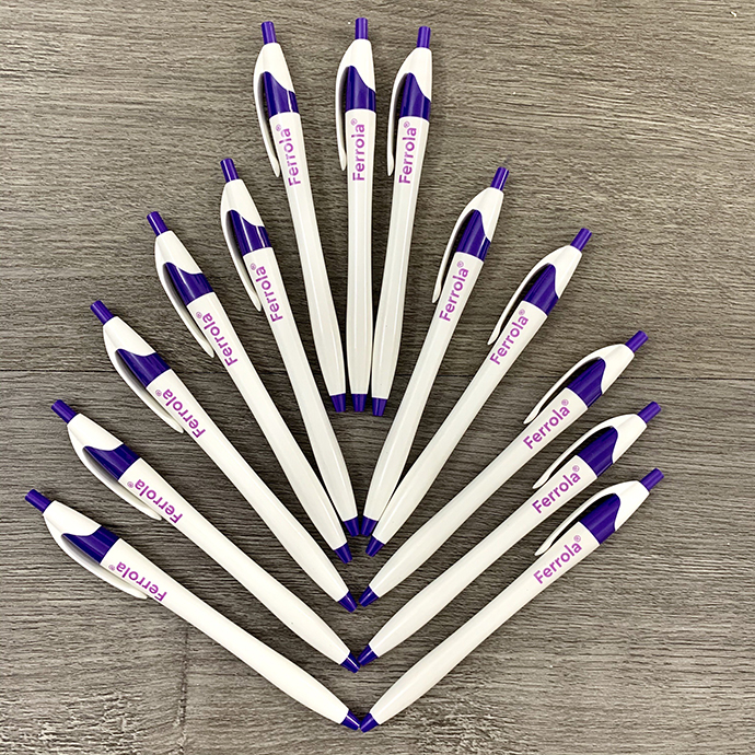 Sở hữu ngay Bút Bi Nhựa Trắng Phối Tím FERROLA để quảng bá thương hiệu và tạo ấn tượng mạnh mẽ với khách hàng, đối tác trong các sự kiện và chiến dịch marketing!