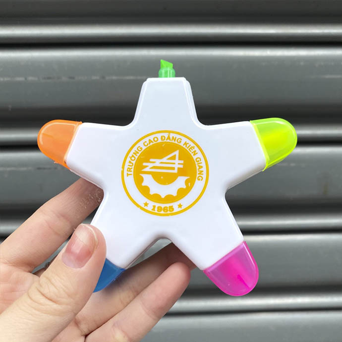 Bút dạ quang highlight ngôi sao được Trường đại học Kiên Giang đặt làm với số lượng in logo Trường làm quà tặng cho sinh viên.