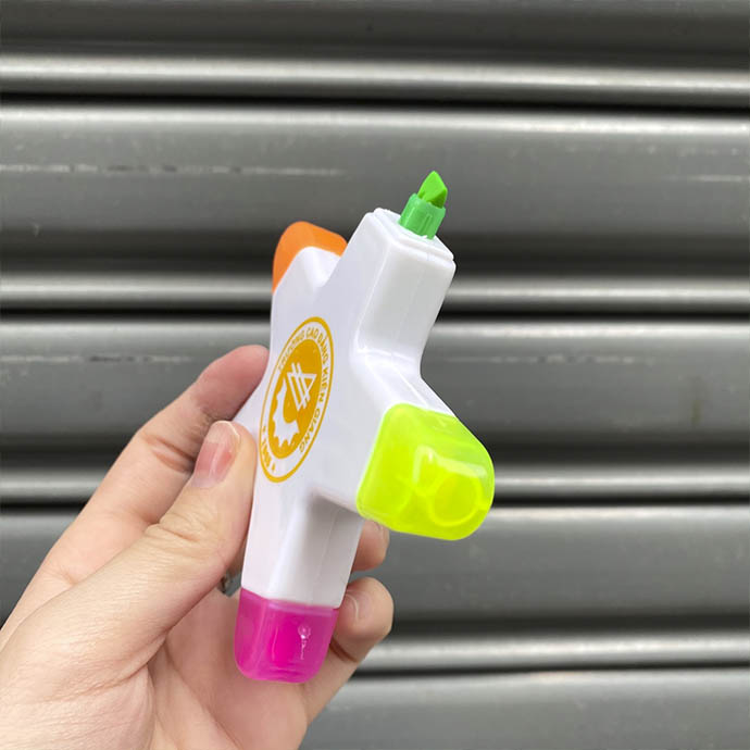 Bút dạ quang highlight hình ngôi sao dễ thương với thiết kế 5 cánh sao là 5 đầu bút khác màu nhau gồm màu : xanh dương, xanh lá, cam, vàng, hồng.
