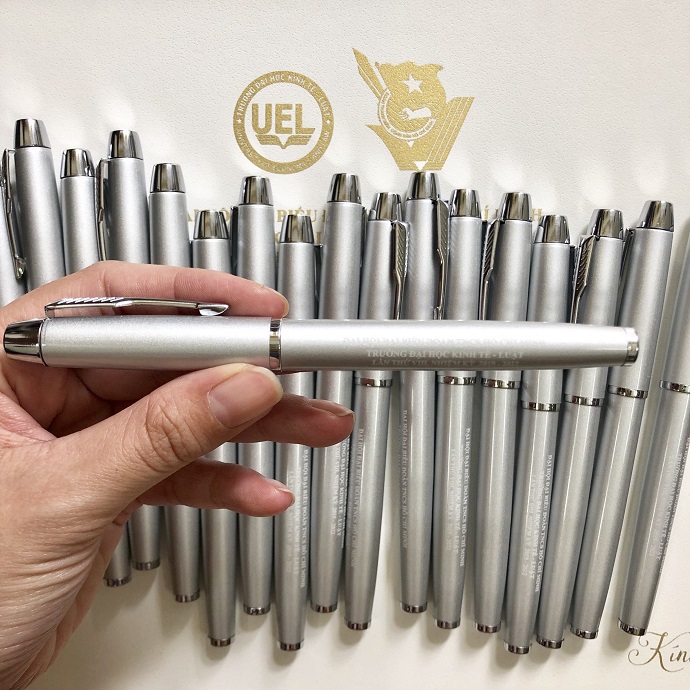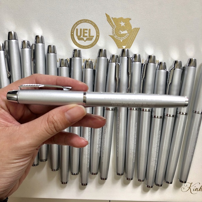 Bút Kim Loại Khắc Logo Đại Học Kinh Tế Luật Màu Bạc - Tinh Tế và Chuyên Nghiệp