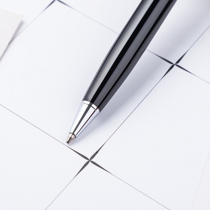 Bút bi kim loại màu đen có thiết kế trang nhã, tinh tế toàn thân đen, cài bạc, tạo nên sự sang trọng và đẳng cấp.