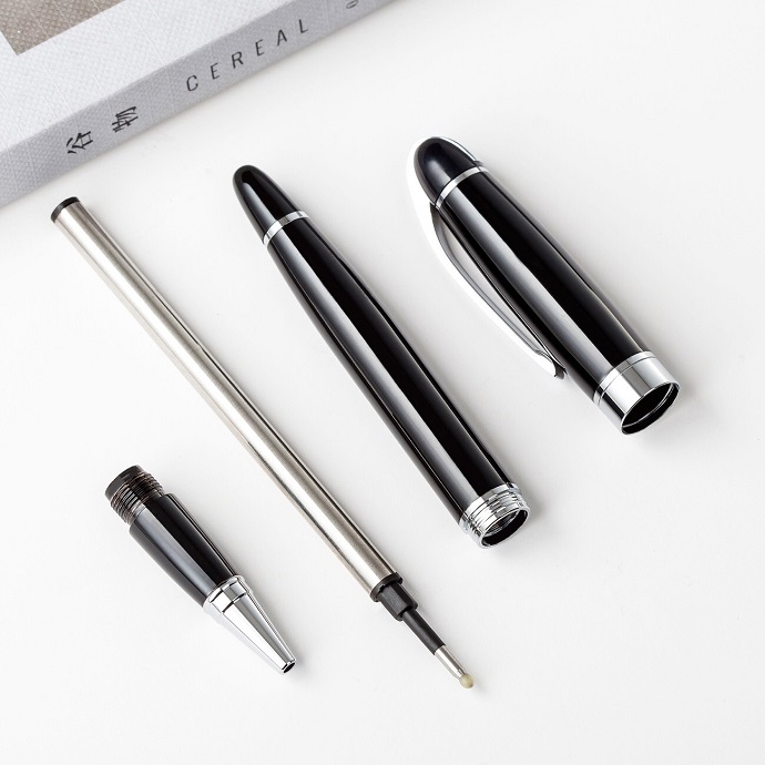 Bút ký kim loại bật nắp cao cấp, toàn thân đen cài bạc sang trọng, trang nhã thích hợp làm quà tặng khách hàng, đối tác, hội nghị....
