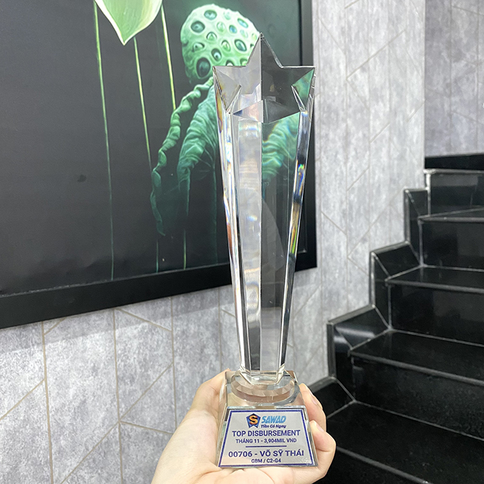 Cúp pha lê mang lại cảm giác trang trọng, sang trọng và chuyên nghiệp, giúp tạo dấu ấn mạnh mẽ trong các sự kiện vinh danh nhân sự hoặc đối tác chiến lược.