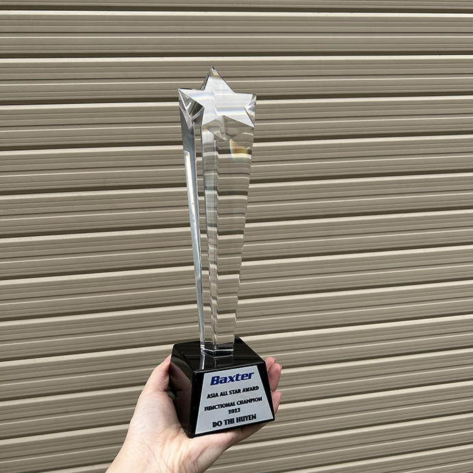 Cúp được kiểm tra độ trong, độ dày và độ cân bằng để đảm bảo mỗi sản phẩm được trao tặng đều đạt giá trị thẩm mỹ cao nhất.