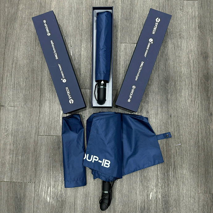 Ô dù cỡ lớn màu xanh navy, khung chắc chắn, in logo Check Point nổi bật. Sản phẩm tiện dụng che mưa nắng hiệu quả, thích hợp làm quà tặng khách hàng, nhân viên và sự kiện.