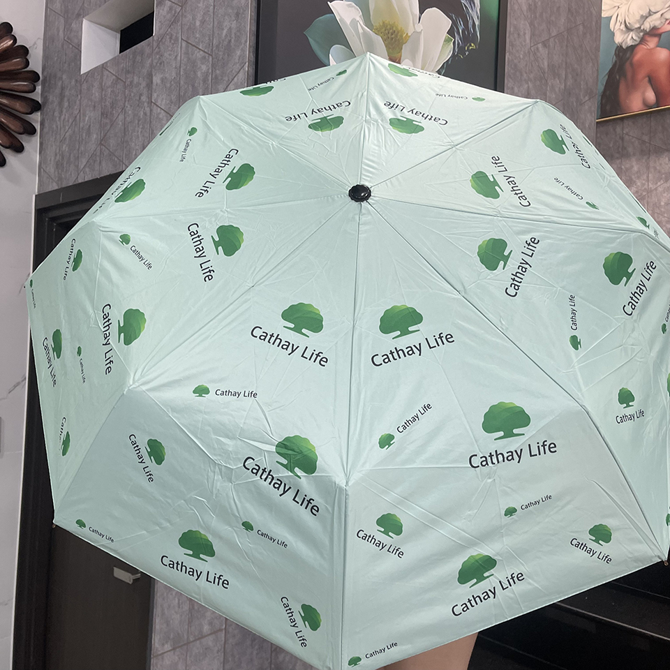 Ô dù in logo Cathay Life được thiết kế sang trọng, gọn nhẹ, vừa là vật dụng che nắng mưa, vừa là công cụ quảng bá thương hiệu hiệu quả.