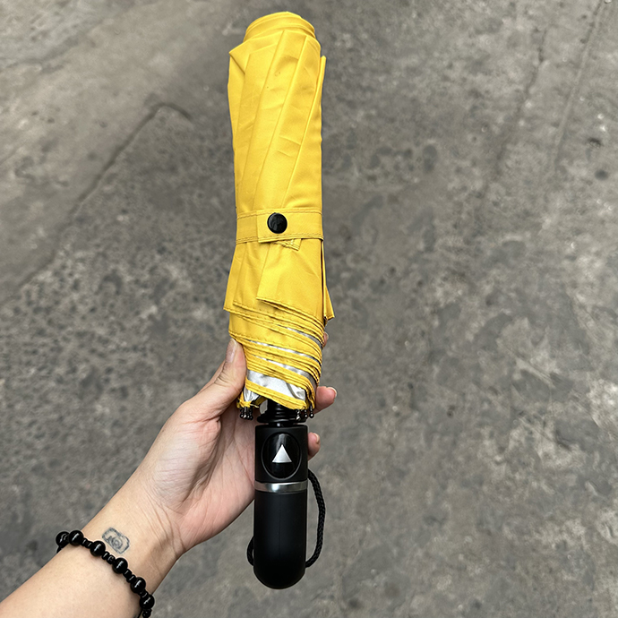 Ô dù gấp 3 màu vàng tươi nổi bật, thiết kế nhỏ gọn, tiện dụng. Sản phẩm phù hợp làm quà tặng quảng cáo, sự kiện, hội nghị, ngân hàng, bảo hiểm.