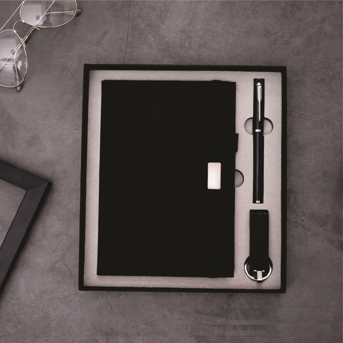 Bộ quà tặng gồm sổ tay cao cấp, bút ký kim loại và móc khóa sang trọng, mang đến một bộ sản phẩm đồng bộ, tinh tế và thiết thực. Đây là set quà tặng doanh nghiệp rất được ưa chuộng nhờ phong cách hiện đại và dễ in logo theo yêu cầu.