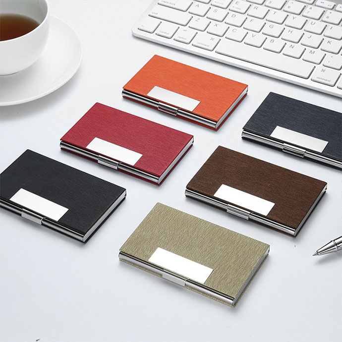 Hộp đựng danh thiếp kim loại bọc da PU là sản phẩm cao cấp được ưa chuộng bởi thiết kế nhỏ gọn, sang trọng và độ bền vượt trội. Với lớp vỏ da PU mềm mại bao quanh khung kim loại sáng bóng, sản phẩm giúp bảo vệ danh thiếp khỏi ẩm, cong mép hoặc trầy xước khi di chuyển.