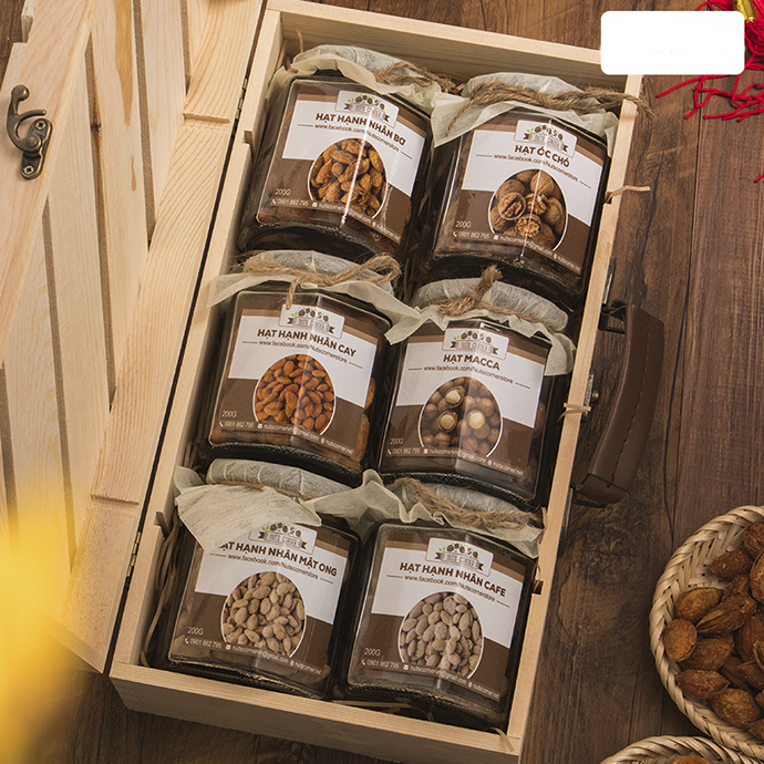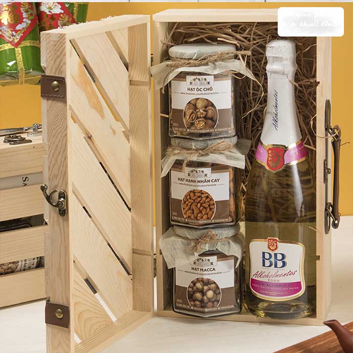 Sản phẩm được thiết kế dành cho phân khúc quà tặng cao cấp, kết hợp rượu vang cùng các loại hạt dinh dưỡng, mang ý nghĩa sức khỏe và sự sang trọng.