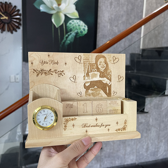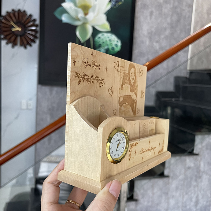 - Khay đựng bút để bàn gồm: khay đựng bút, đồng hồ, lịch.