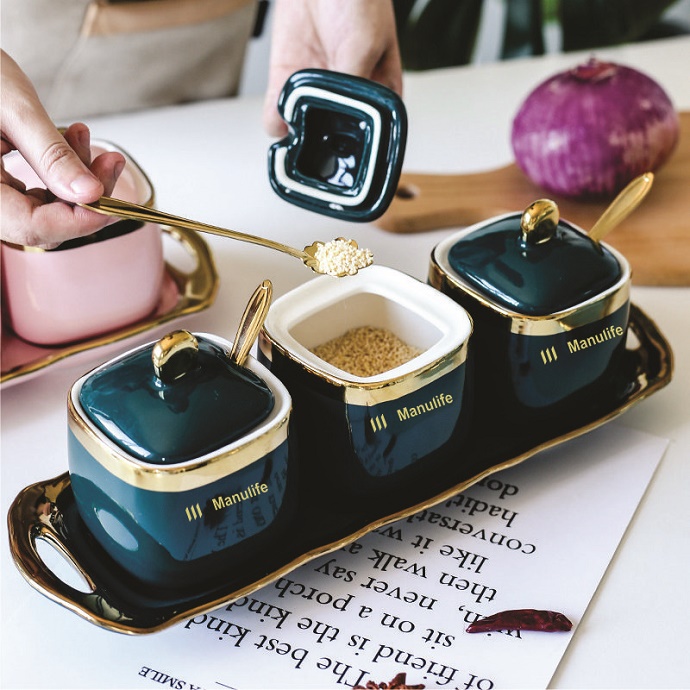 Với màu sắc sang trọng, bắt mắt khay đựng gia vị bằng sứ cao cấp giúp nhà bếp trở nên đẳng cấp và tinh tế hơn. Hũ đựng rất đa năng, dễ sử dụng có nắp đậy để tránh ẩm mốc và bảo vệ gia vị hoặc kẹo mứt bên trong tránh ruồi muỗi bay vào.