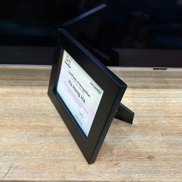 Mẫu khung được thiết kế với đường nét vuông vức, bề mặt mịn, tạo cảm giác sang trọng khi đặt trên bàn làm việc hoặc khu vực trưng bày.