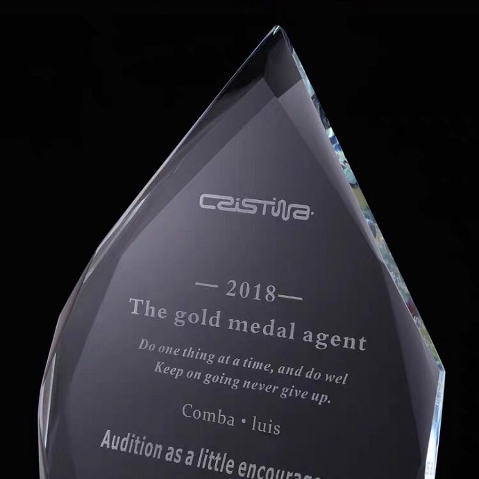 Cúp pha lê elip cạnh vát mang vẻ đẹp sắc sảo nhờ các đường cắt tinh tế, phản chiếu ánh sáng ấn tượng. Thiết kế hiện đại giúp sản phẩm trở thành biểu tượng vinh danh đầy ý nghĩa cho doanh nghiệp.