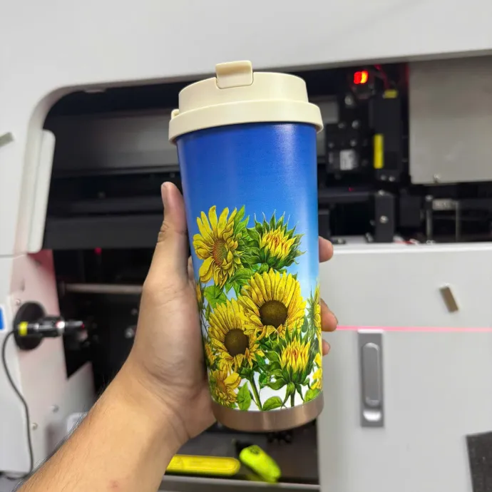 Ly giữ nhiệt in logo là sản phẩm được nhiều doanh nghiệp ưa chuộng vì sự tiện lợi, tính thẩm mỹ cao và khả năng quảng bá thương hiệu hiệu quả. Mẫu ly cao cấp với họa tiết hoa hướng dương nổi bật, thích hợp làm quà tặng trong các dịp đặc biệt.