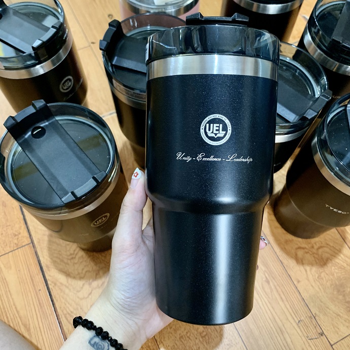 Ly giữ nhiệt Tyeso là sản phẩm Trường Đại Học Kinh Tế Luật lựa chọn làm sản phẩm quà tặng khắc logo lên ly.