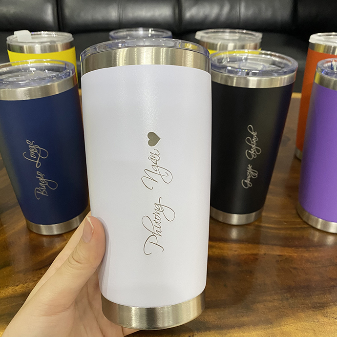 Ly Giữ Nhiệt Inox Màu Xanh Rêu In Khắc Logo Theo Yêu Cầu