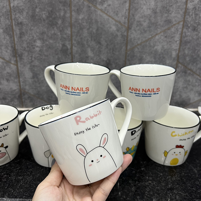 Ly sứ họa tiết ngộ nghĩnh in logo sở hữu thiết kế đáng yêu, hình minh họa sinh động kết hợp chất liệu sứ cao cấp. Sản phẩm phù hợp sử dụng trong gia đình, quán cà phê, tiệm nail hoặc làm quà tặng thương hiệu.