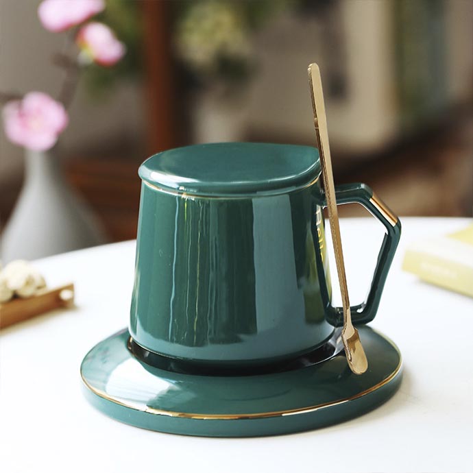 Bộ tách cà phê sứ cao cấp gồm ly, dĩa lót và thìa đồng bộ màu sắc, thiết kế tinh tế – hiện đại. Sản phẩm phù hợp làm quà tặng doanh nghiệp, quà tặng khách hàng, quà tặng sự kiện hoặc sử dụng trong quán café – văn phòng.