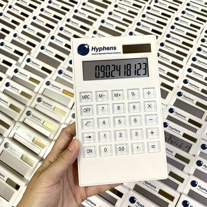 Máy tính cầm tay thiết kế gọn nhẹ, dễ sử dụng, phù hợp làm quà tặng cho học sinh, sinh viên và giáo viên. Sản phẩm nhận in logo trường học, khoa, lớp hoặc sự kiện theo yêu cầu, thích hợp dùng trong học tập và giảng dạy.