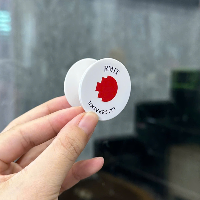 Miếng hít điện thoại (hay còn gọi là phone grip, pop socket) được làm từ chất liệu bền bỉ, thiết kế nhỏ gọn, dễ dàng dán lên mặt lưng điện thoại hoặc ốp lưng. Sản phẩm giúp bạn cầm nắm điện thoại chắc chắn hơn, tránh rơi vỡ và có thể dùng làm giá đỡ tiện lợi khi xem phim, gọi video. Bạn có thể yêu cầu in logo, hình ảnh hoặc thông điệp cá nhân để tạo dấu ấn riêng biệt.