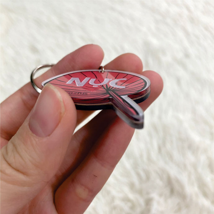 Móc khóa mica hình chiếc quạt mini màu đỏ nổi bật, kiểu dáng độc đáo – cá tính, phù hợp làm phụ kiện sáng tạo hoặc quà tặng thương hiệu. Sản phẩm nhận in nội dung theo yêu cầu, thích hợp cho sự kiện, workshop và chiến dịch truyền thông.