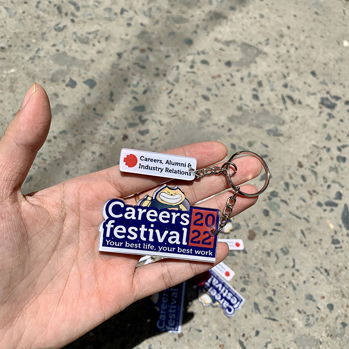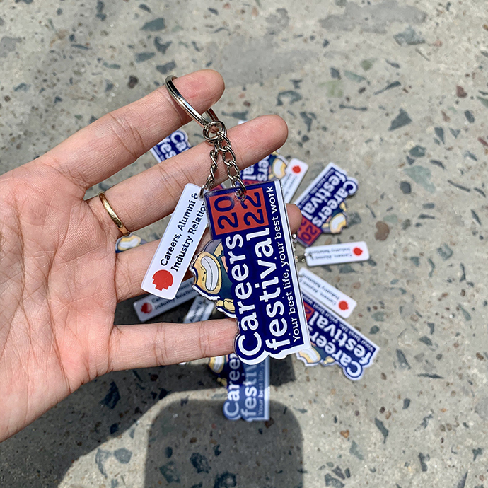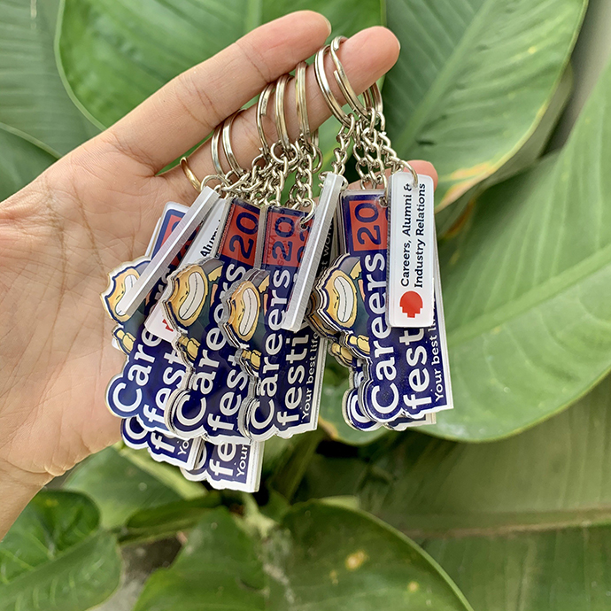 Móc khóa mica có thể in logo, tên chương trình, hình ảnh hoặc thông điệp