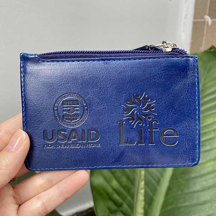 Móc khóa ví da PU in logo là sản phẩm tiện lợi kết hợp giữa móc chìa khóa và ví mini đựng thẻ, tiền lẻ. Thiết kế nhỏ gọn, khóa kéo chắc chắn, phù hợp làm quà tặng doanh nghiệp và vật phẩm quảng bá thương hiệu.