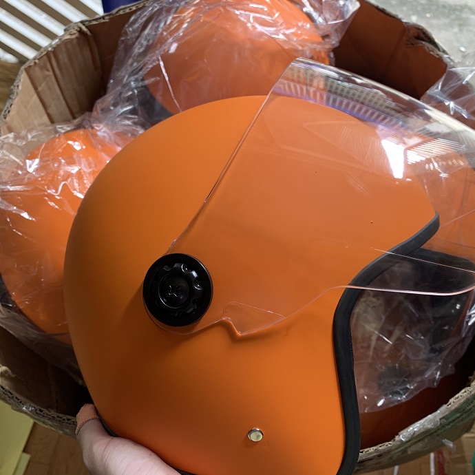 Dòng mũ bảo hiểm nửa đầu màu cam có kính chắn gió là lựa chọn được ưa chuộng trong các chương trình quà tặng doanh nghiệp, do sự kết hợp giữa thiết kế đẹp, độ bền cao và khả năng in ấn logo theo yêu cầu.