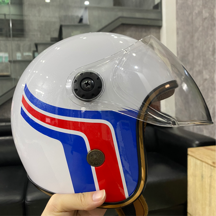 Mũ Bảo Hiểm Nửa Đầu Xanh Sọc Trắng Có Kính – Kiểu Dáng Doanh Nghiệp
