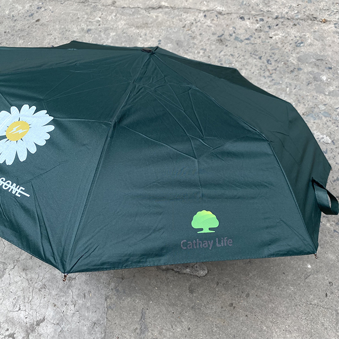 Mẫu ô dù gấp gọn màu xanh đậm kết hợp hoa cúc mang đến phong cách thời trang, trẻ trung và thanh lịch. Đây không chỉ là vật dụng che mưa nắng, mà còn là món quà quảng cáo giúp doanh nghiệp ghi dấu ấn với khách hàng.
