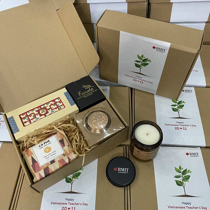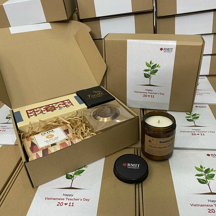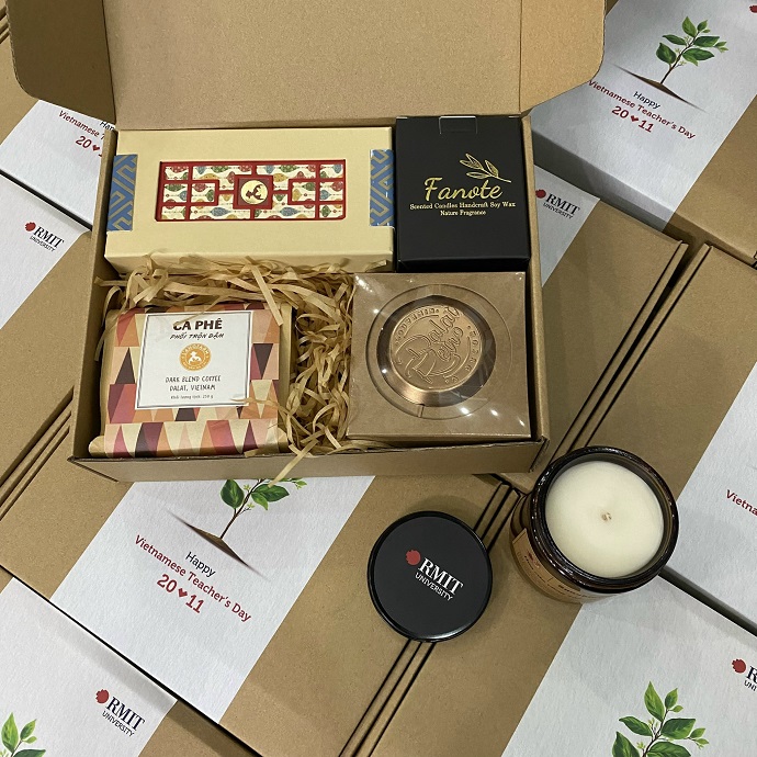 Nhận in logo, thông điệp lên hộp quà, nến thơm hoặc bộ pha cà phê/trà.